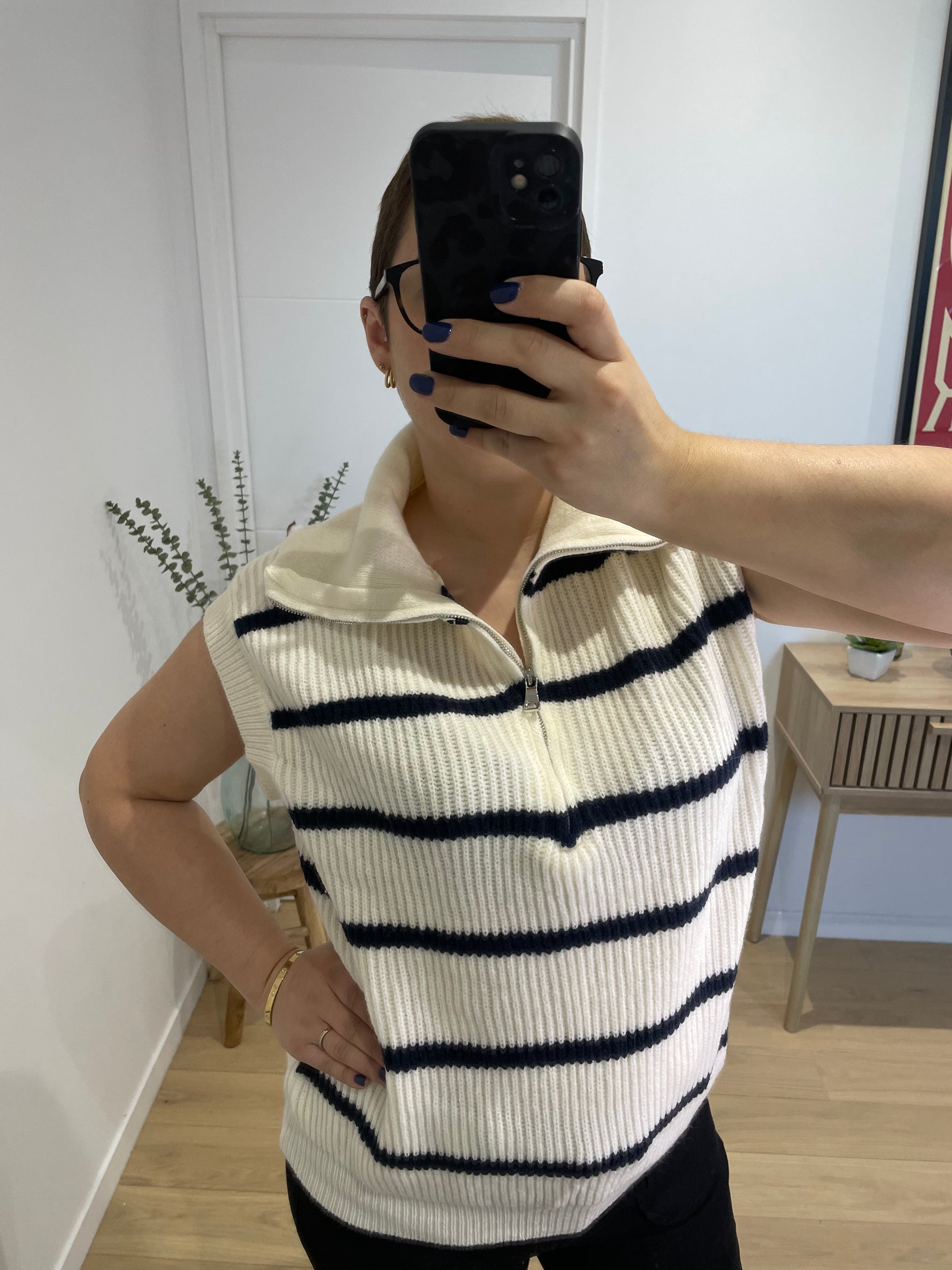 - Pull confortable en maille ouverte sans manches de couleur écru