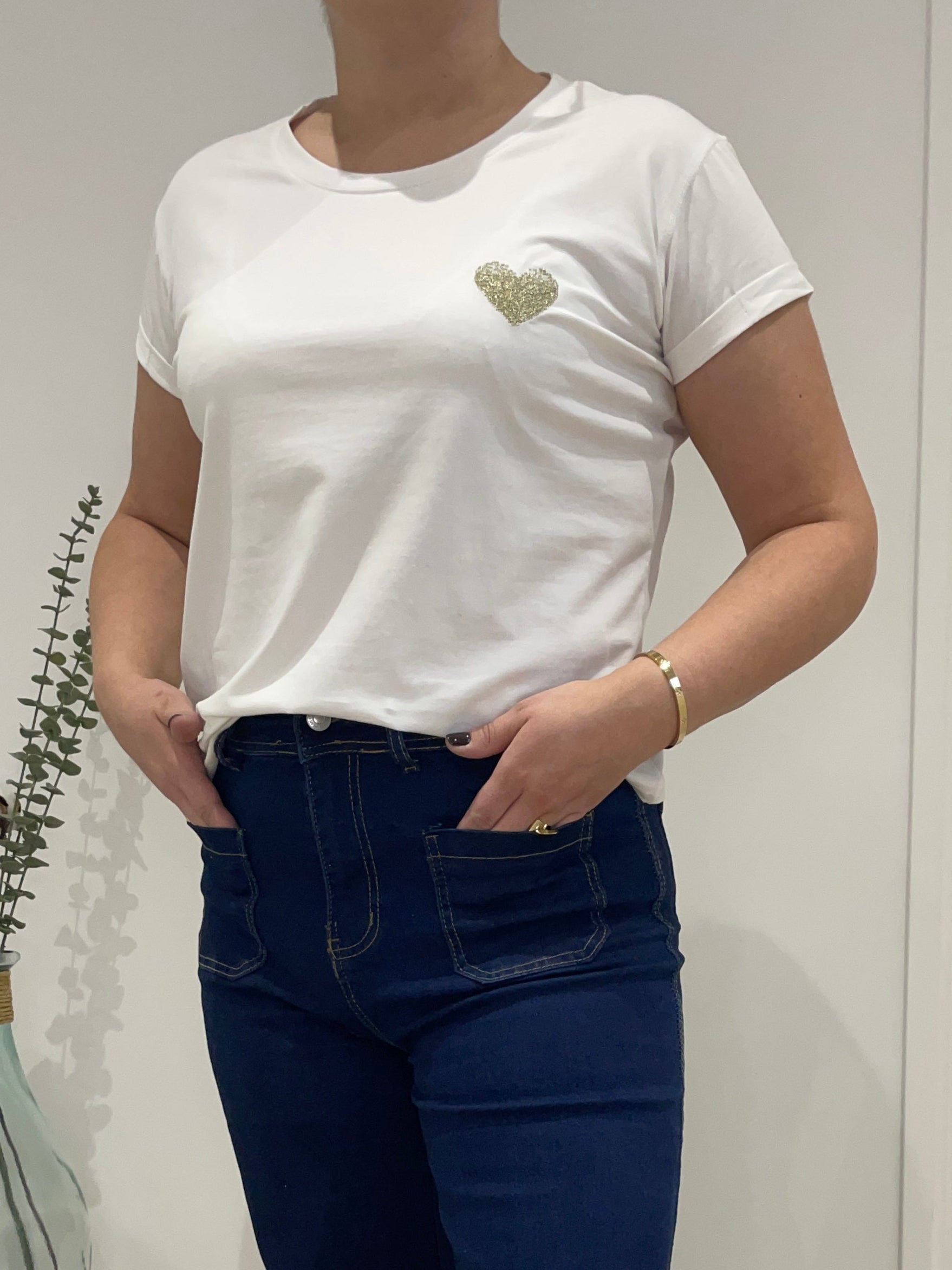 Tee-shirt cœur - blanc/doré