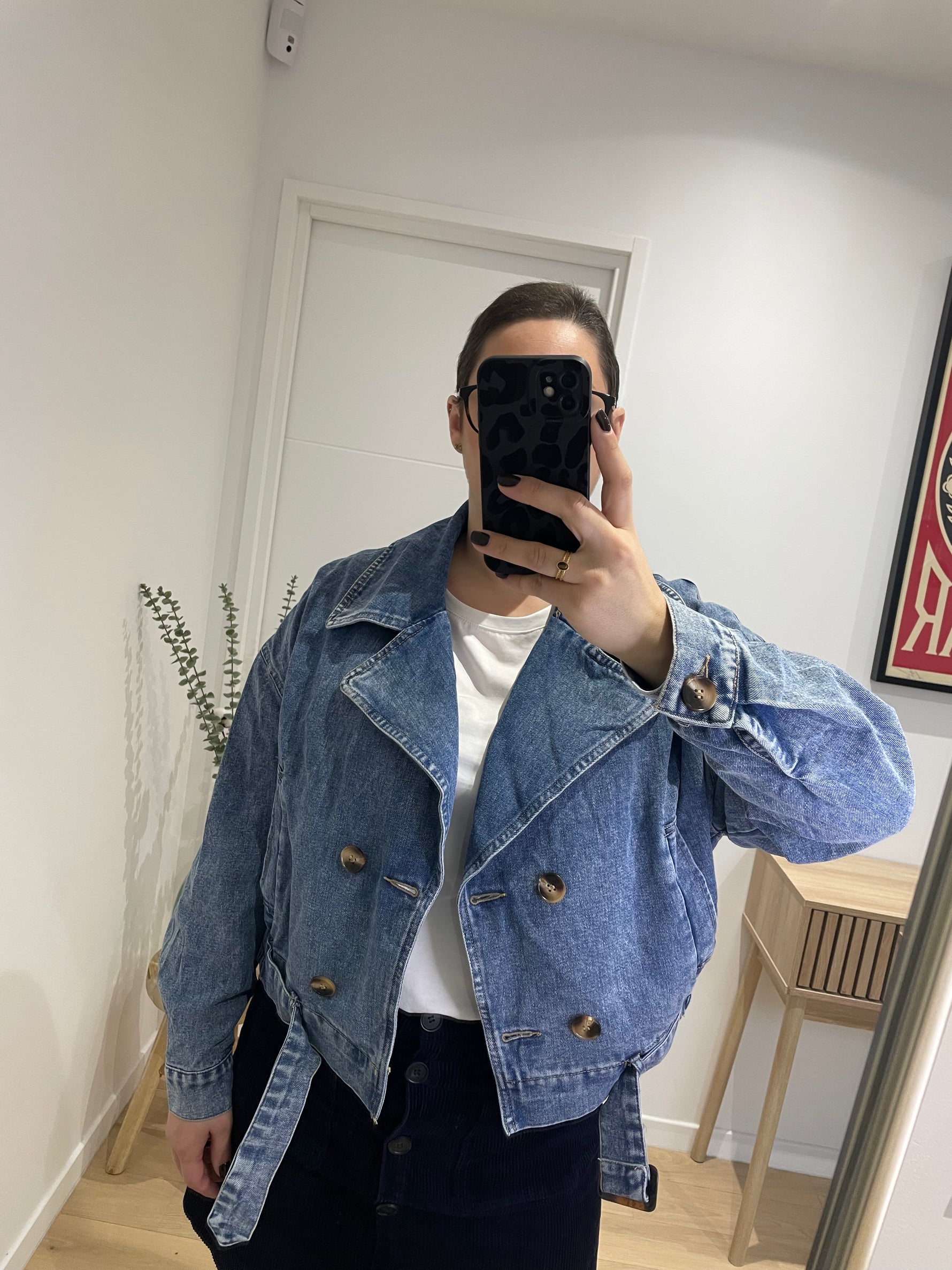 - Veste en jeans oversize -Fermeture à boutons -Manches ballonnées -Ceinture ton sur ton