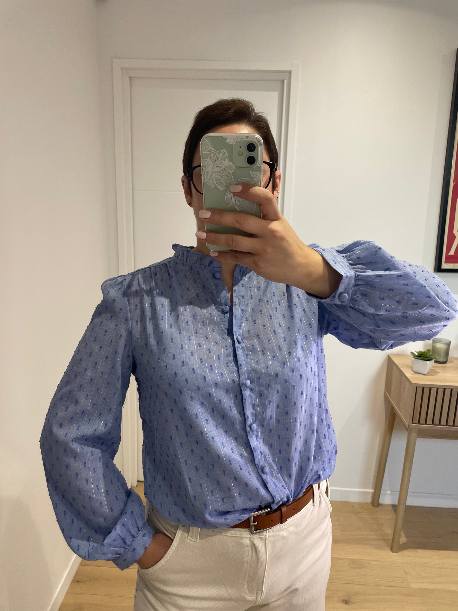 - Ce chemisier associe un tissu plumetis délicat à des rayures lurex brillantes.